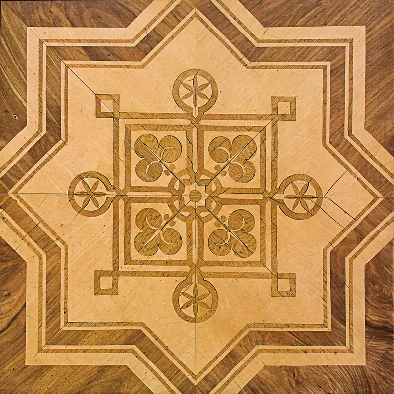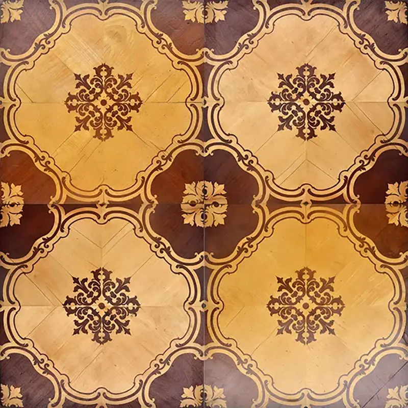 du somptueux parquet à panneaux baroque, aux élégantes marqueteries du XVIIIᵉ siècle, jusqu’aux motifs Art déco rares et aux designs modernes des années 1950.